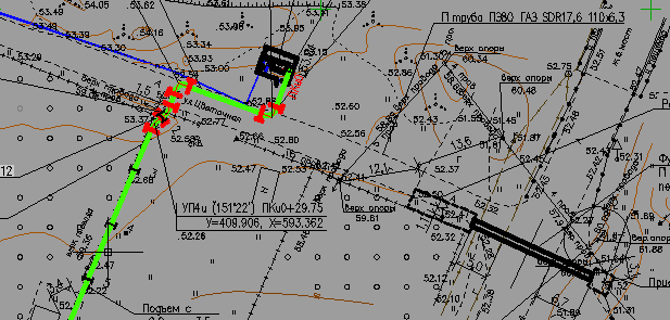 Landprof2012 allows to lay underground and ground pipeline in the plan. Any general or enlarged topographic plans of any scale created in specialized systems (Credo, AutoCAD, Civil3D, etc.) or drawn in AutoCAD can be used as the basis. Dots or predrawn polilines are used to create the pipeline. Calculation of stationing is carried out completely automatically using available functions for handling cut pickets or retracing as well as full set of tools to comply with GOST 21.610-85. Our experience of cooperation with leading civil engineering companies allowed us to envisage solution scenarios for various situations which may arise in the process of designing, for example, displacement of the plan model from the route of gas pipeline, alteration of the direction of the route of gas pipeline and many others. The base of the design can be supplemented with new information at any stage of designing which allows to avoid loss of time for corrections.