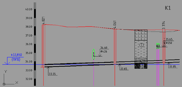 ProjectVik2011 provides a set of tools for editing the positions of the pipe and wells. The pipe and wells are represented at the profile by special custom entities. Their properties can be viewed and edited by means of the AutoCAD palette of properties.
